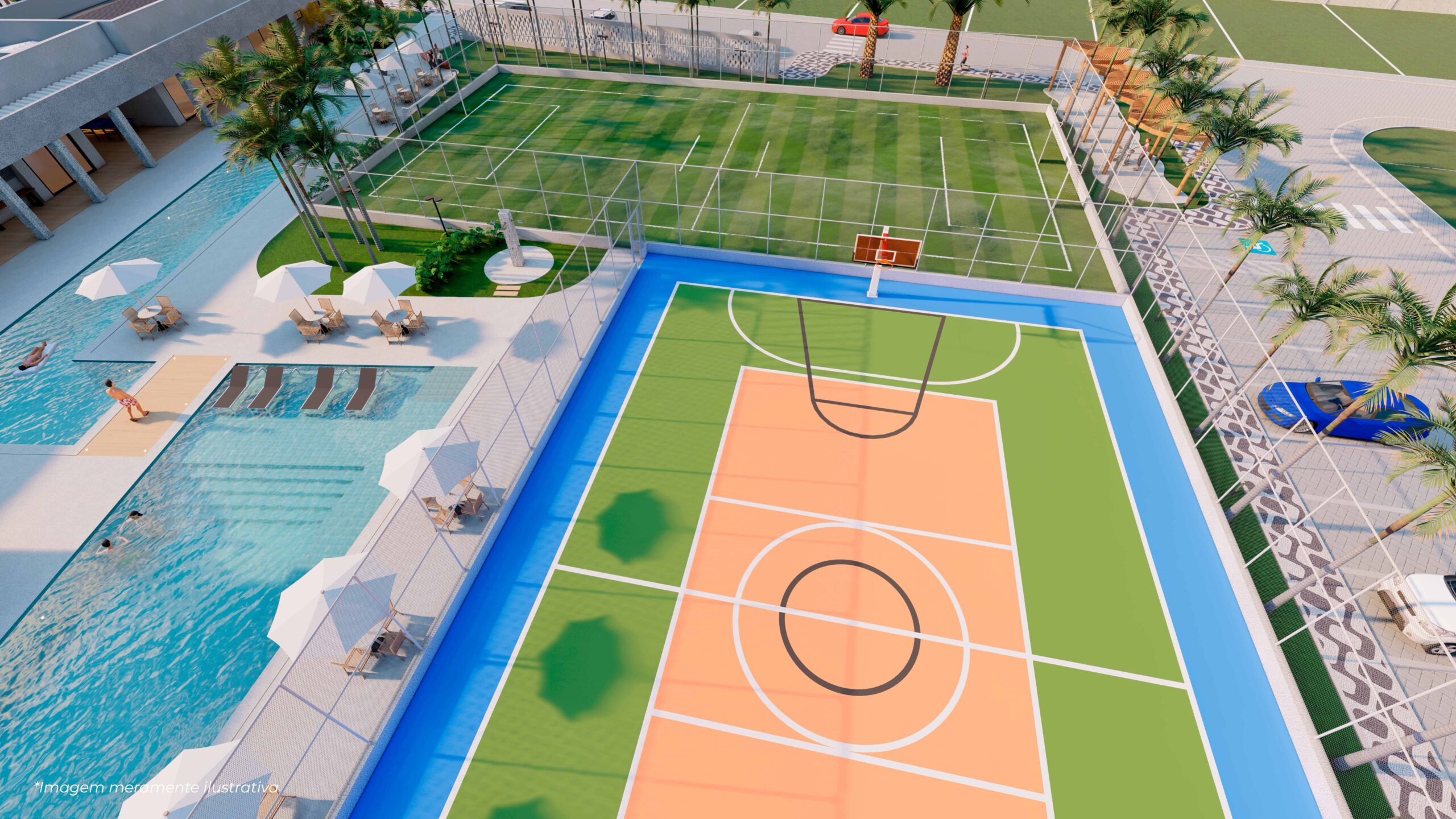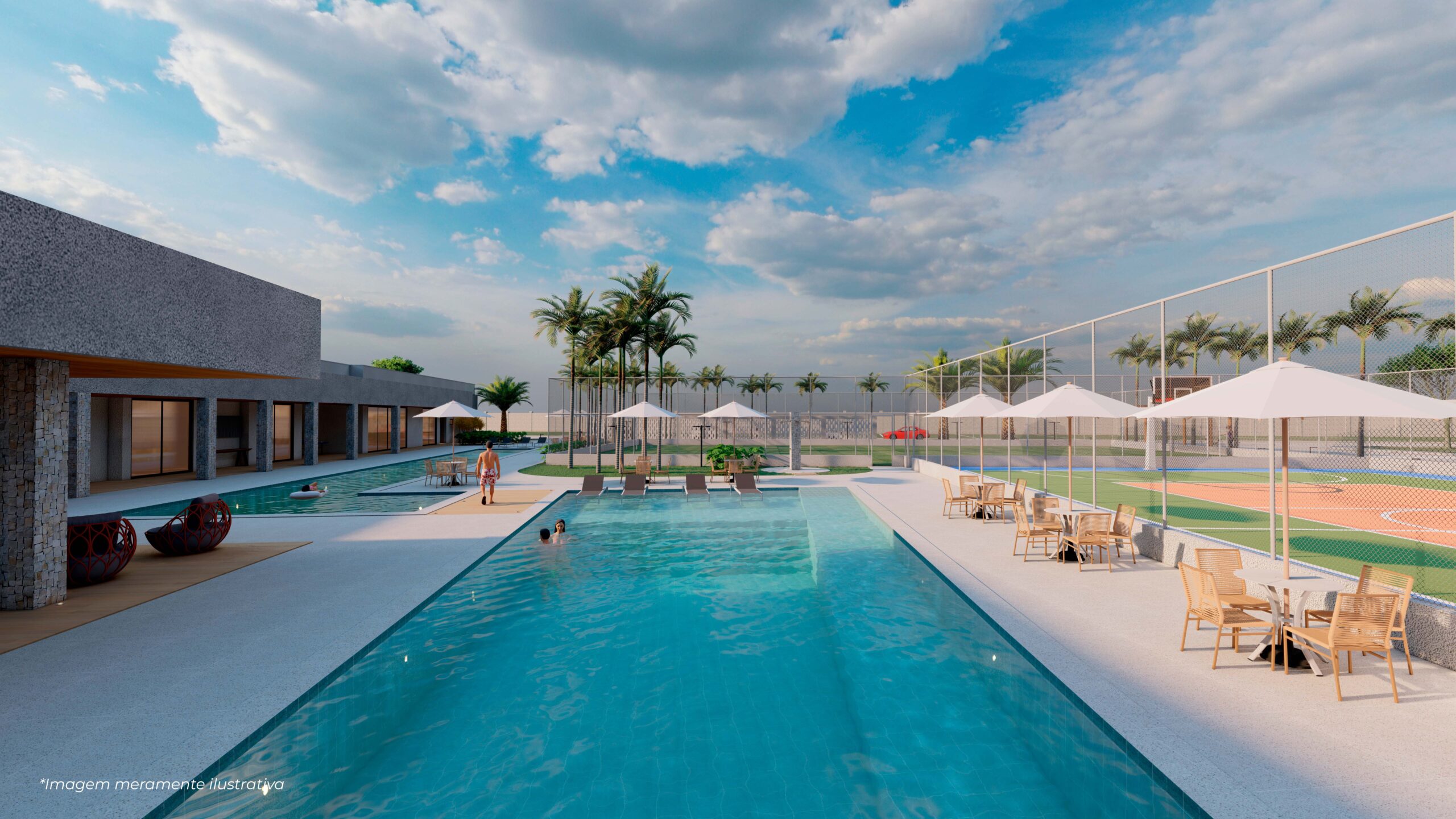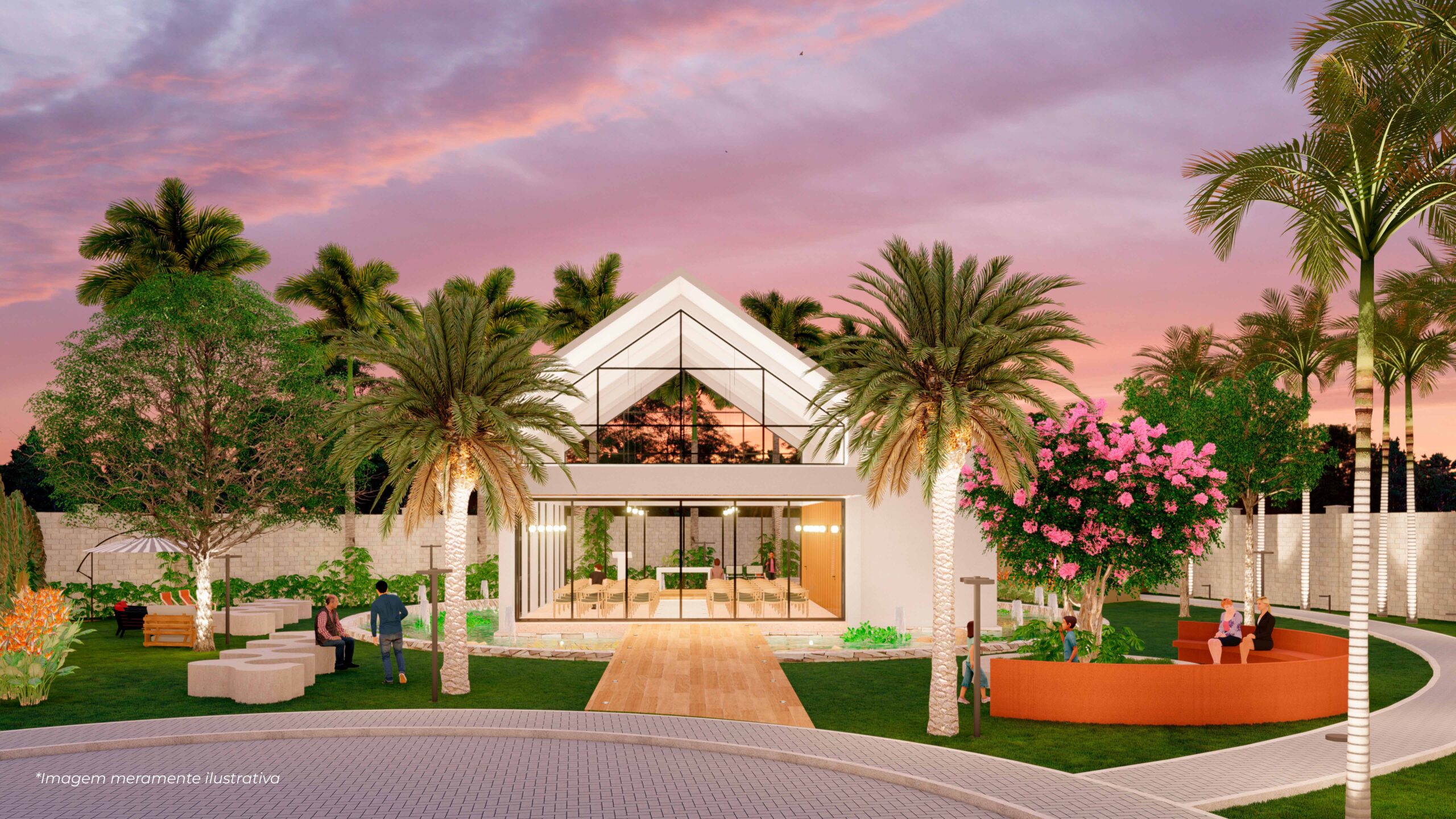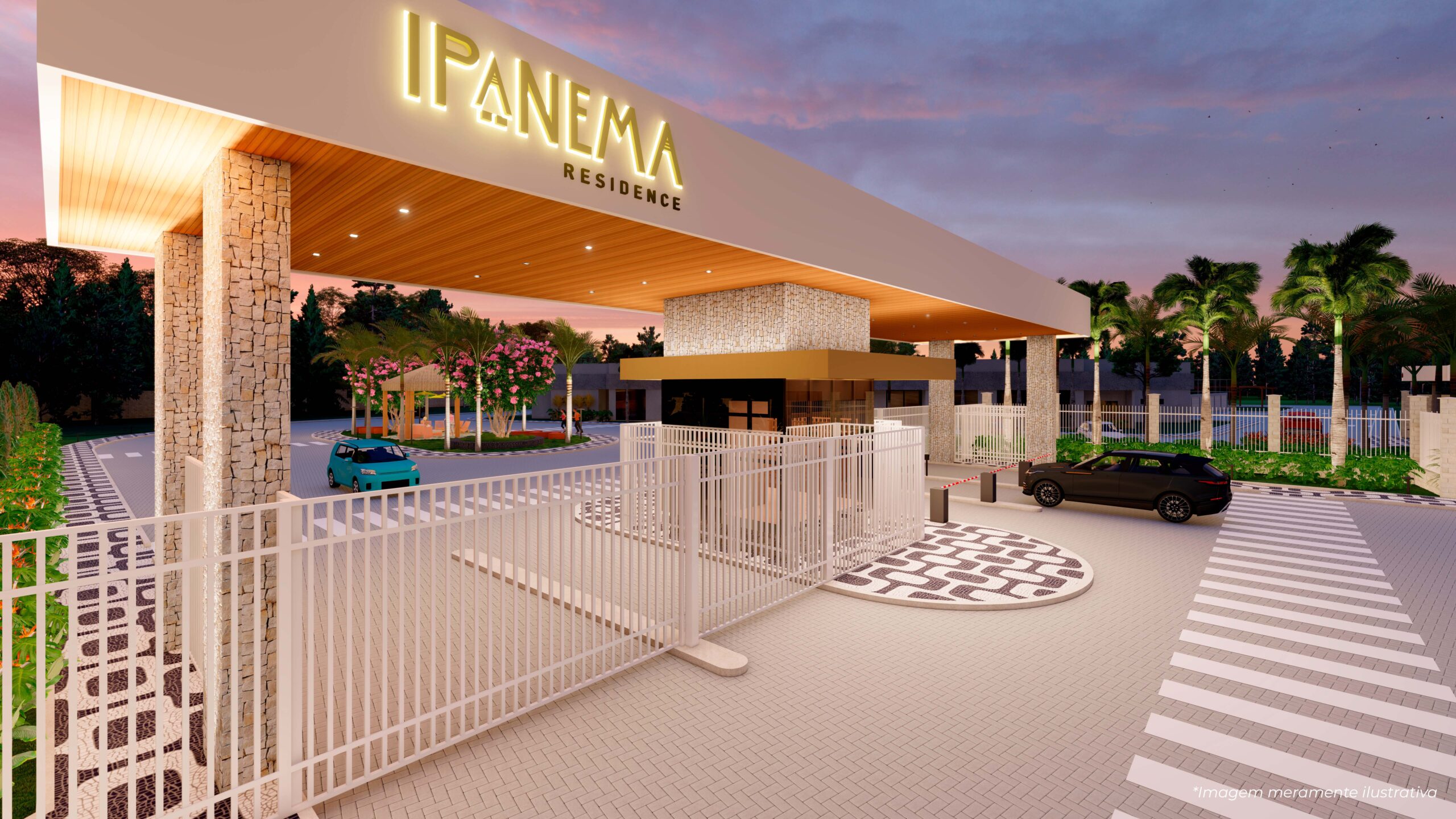 O empreendimento conta com sistema viário de ruas largas e pavimentadas, com blocos intertravados e caminhos feitos com ondas de céu e luz.