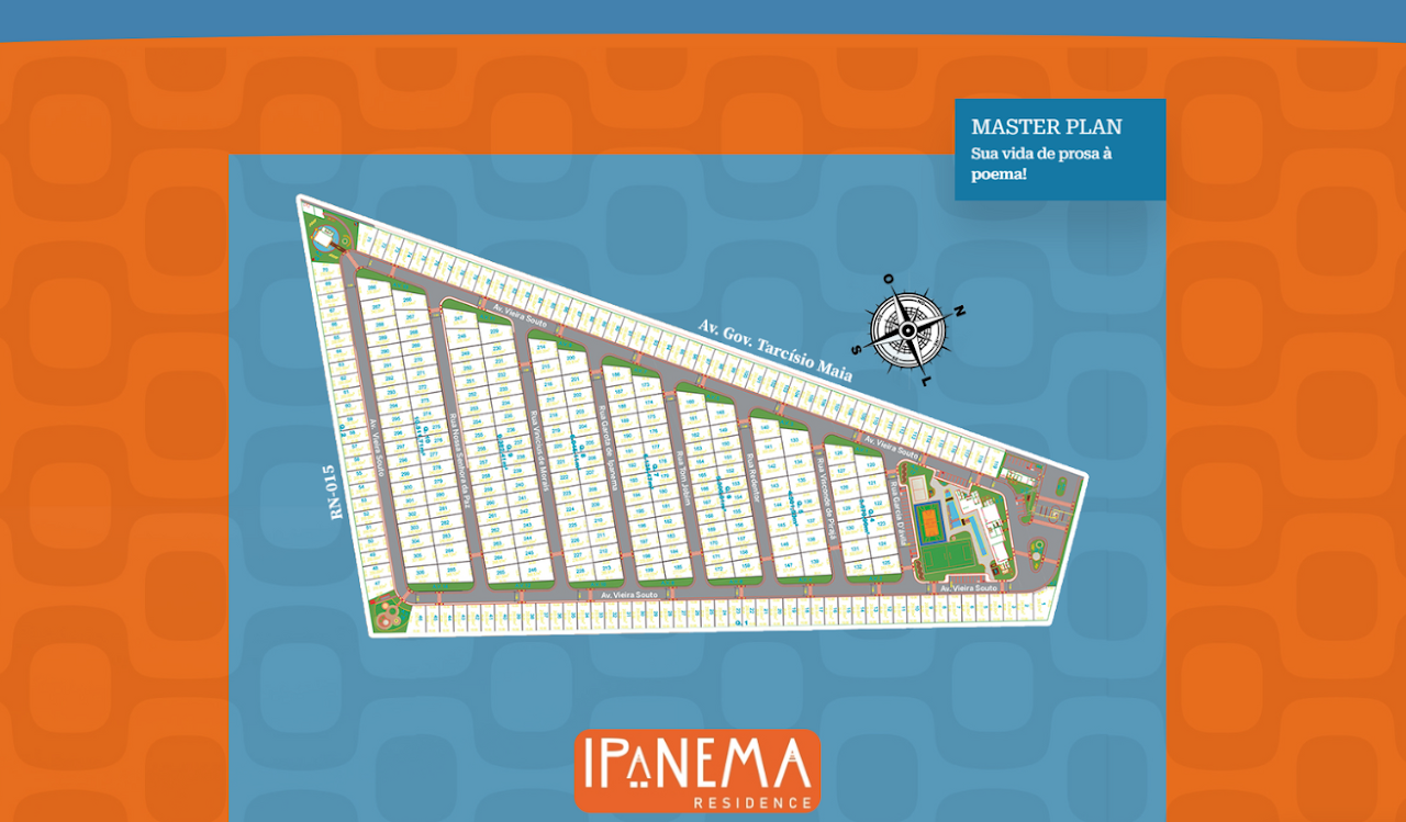 Com 306 lotes que vão de 200 até 369m², além de 14 mil m² de área verde, arquitetura moderna, única com características que sobressaem ao comum, o Residencial Ipanema Mossoró tem infraestrutura com a maioria dos lotes virados para norte e sul, dando conforto de sombra e ótima ventilação da sua casa.